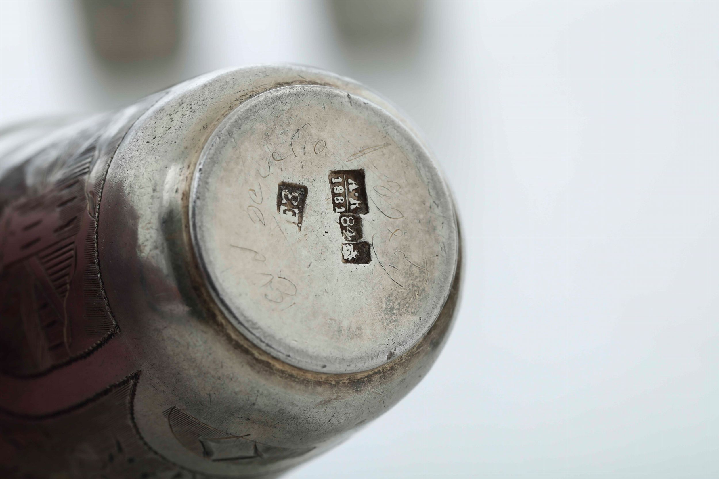 Quattro bicchieri. Argento fuso, sbalzato e cesellato. Russia fine XIX secolo, differenti [..]