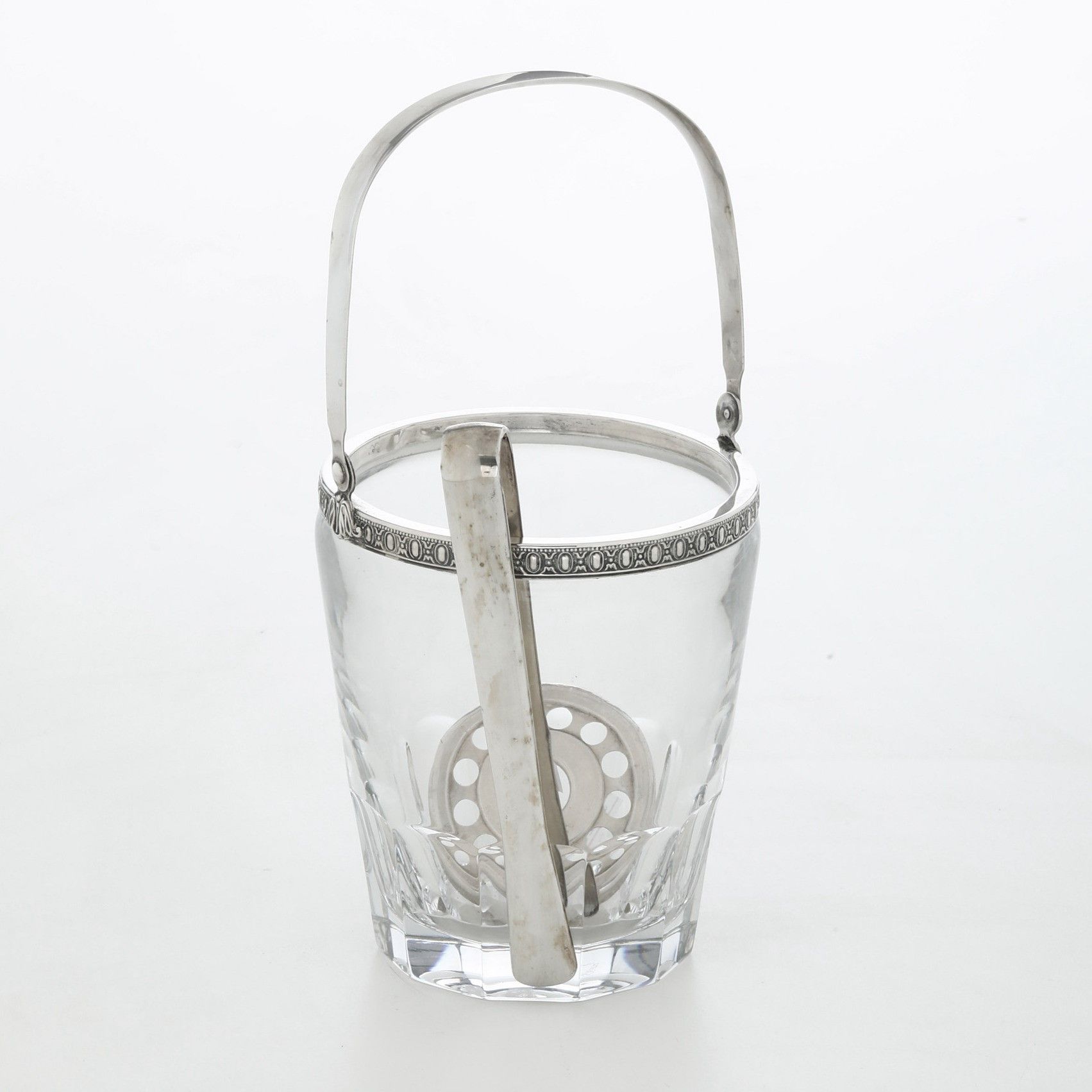 Secchiello in vetro con finimenti in argento. Argenteria toscana del XX secolo