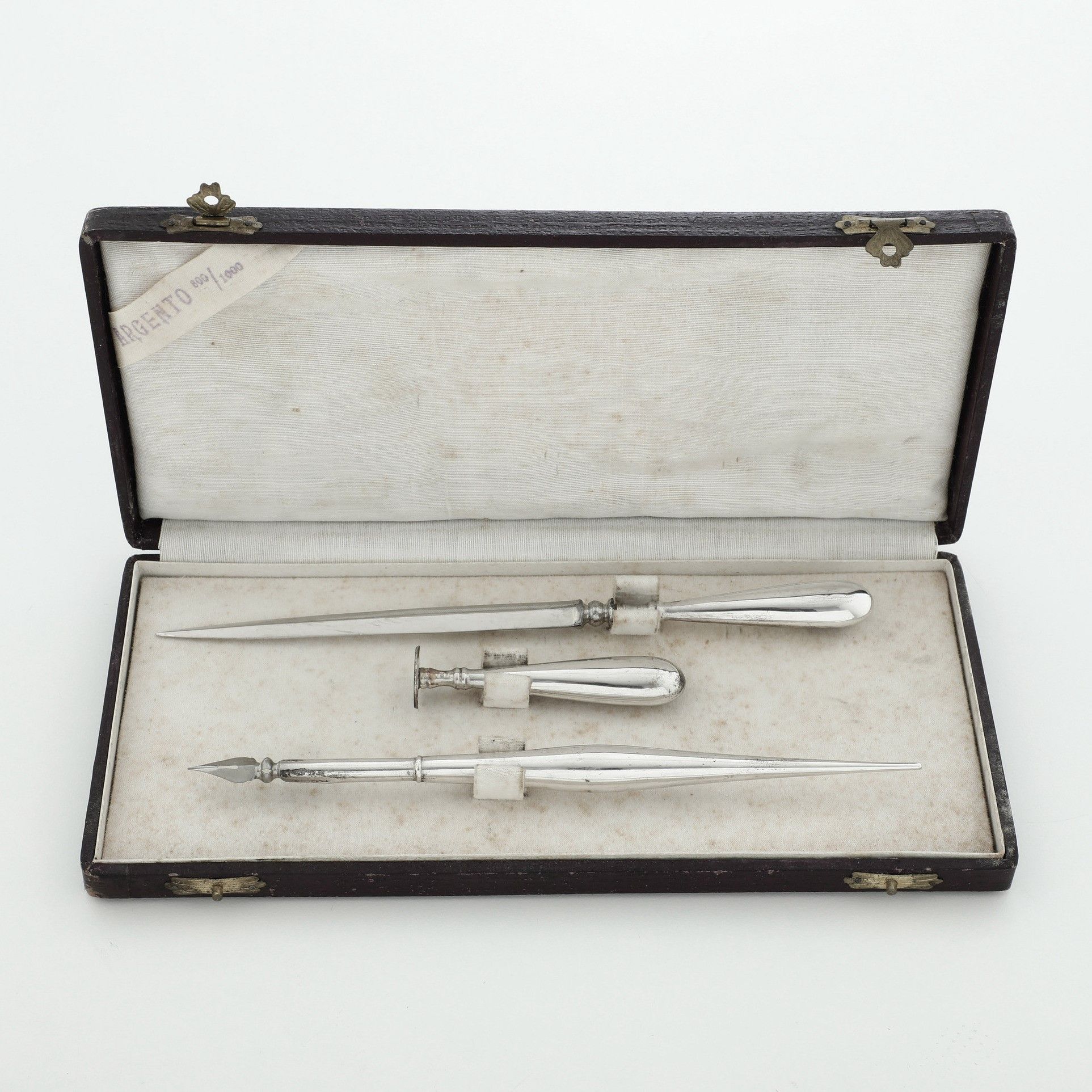 Set da scrivania in custodia. Argenteria italiana del XX secolo