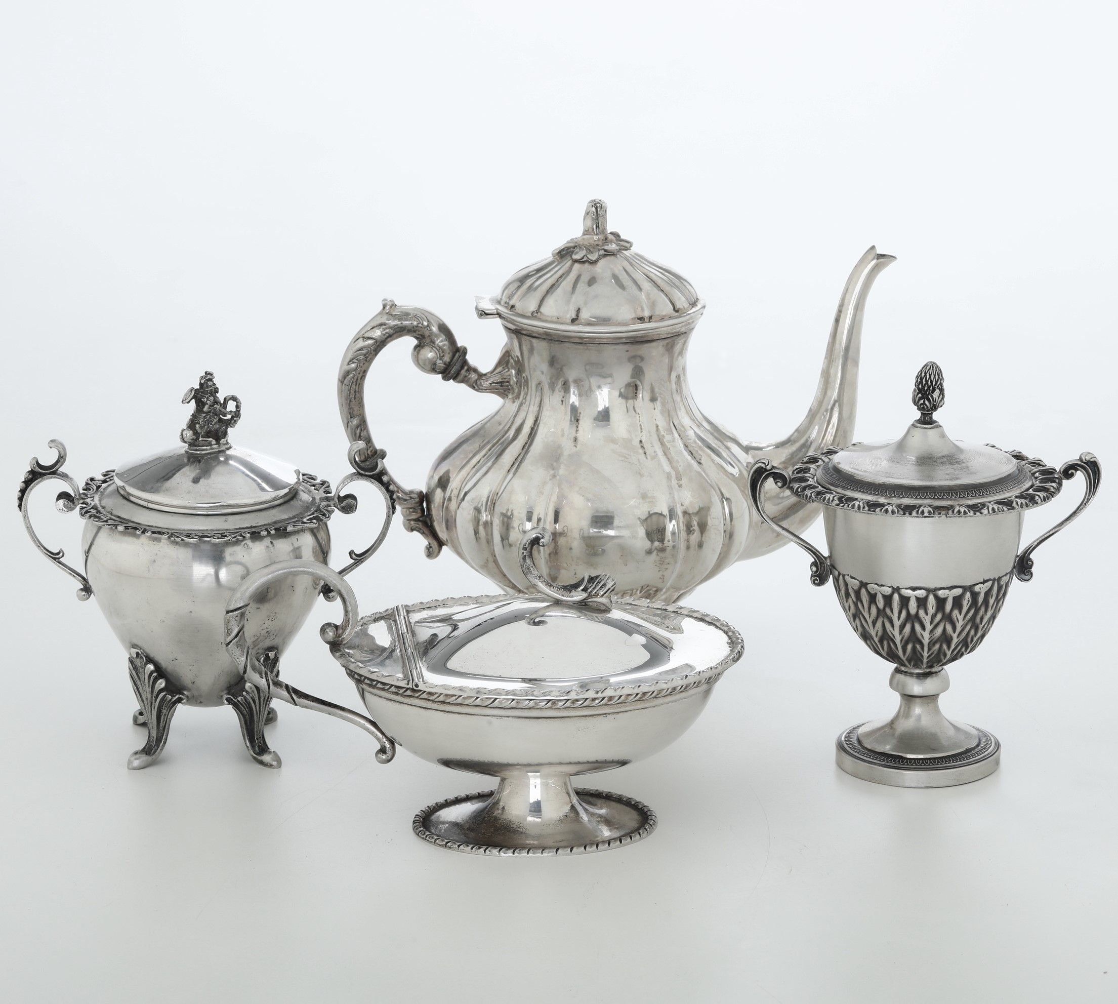 Teiera, formaggera e due zuccheriere. Argenteria italiana del XX secolo, vari ar [..]