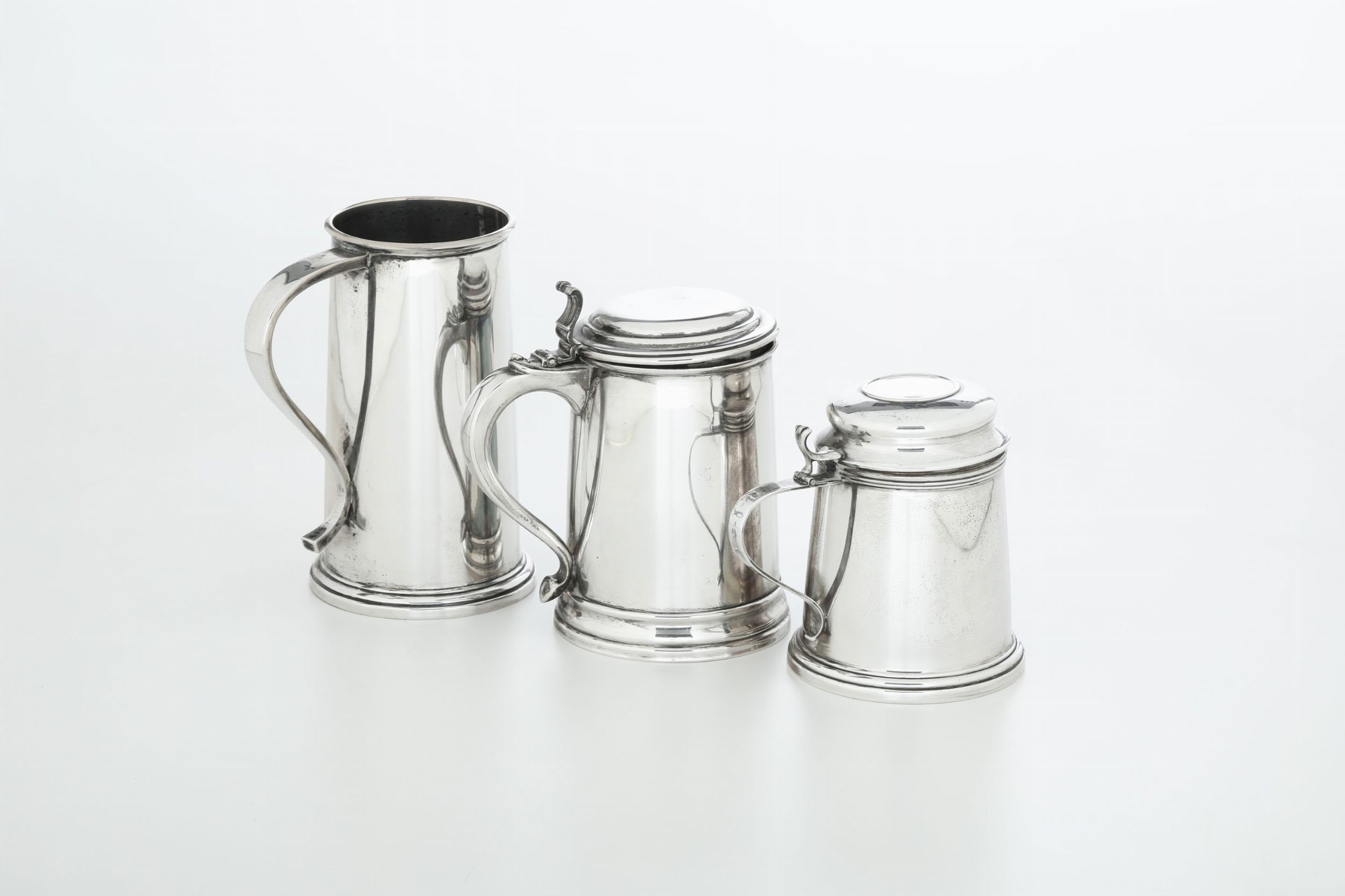 Tre tankard. Argenteria milanese del XX secolo, uno argentiere Miracoli e due Ge [..]