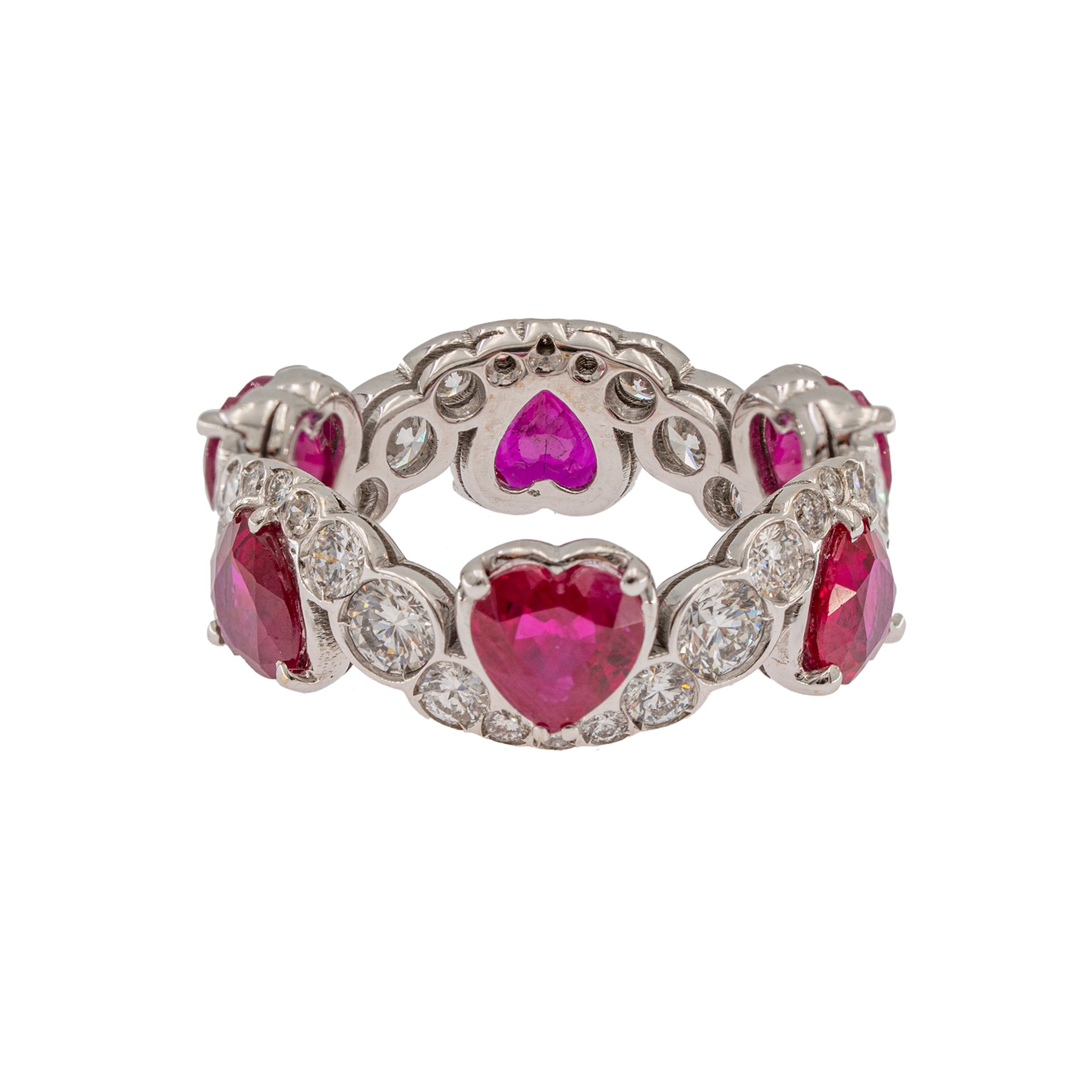 Anello fede in oro bianco 18kt rubini a cuore e diamanti