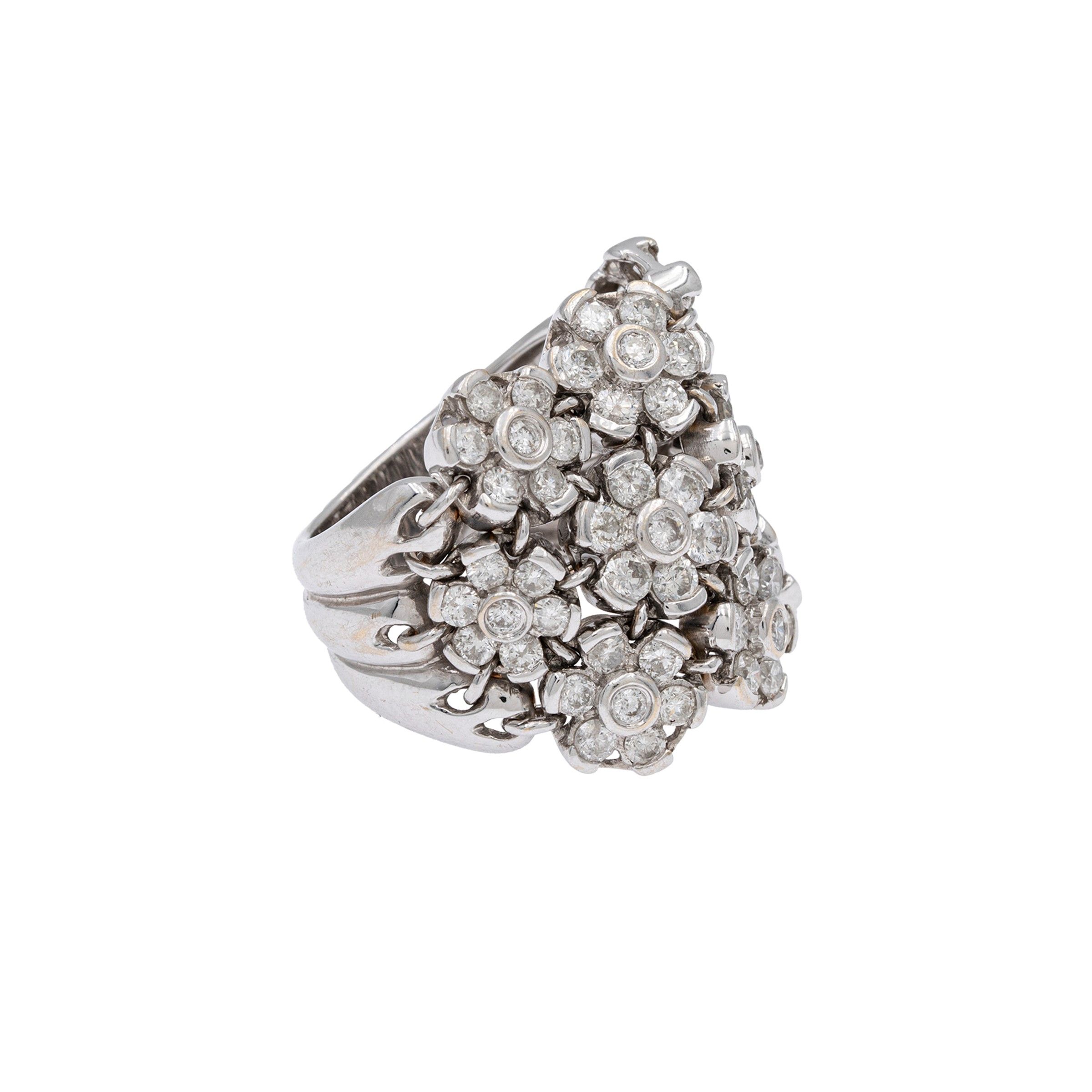 Anello fiori en tremblant in oro bianco 18kt e diamanti