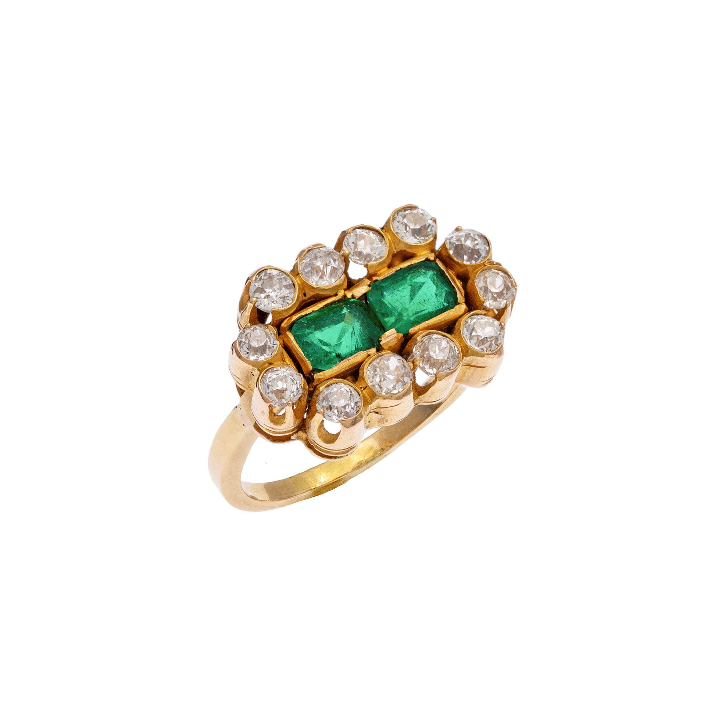 due smeraldi taglio smeraldo ct 0,90 circa, diamanti taglio brillante antico ct 0,90 circa, misura 19