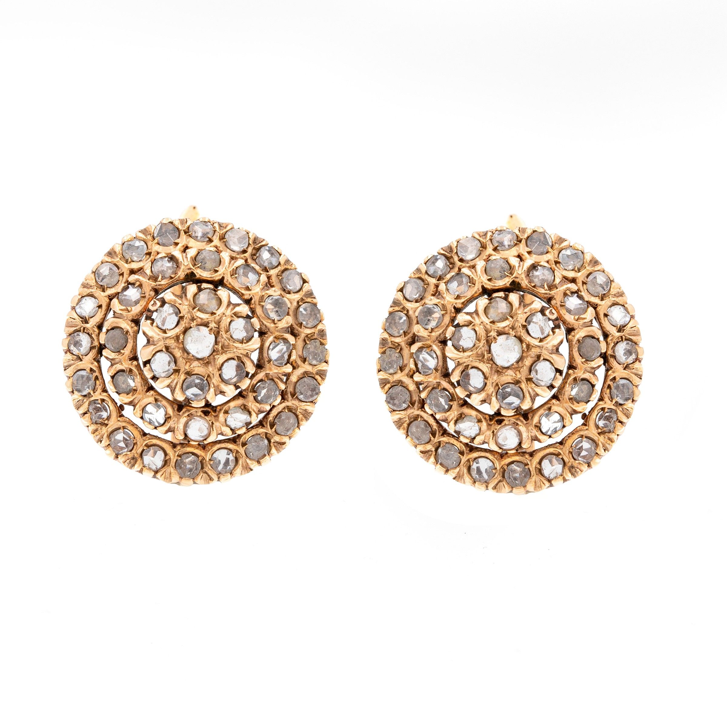 Antichi orecchini a monachina in oro rosa 9kt e rose di diamante