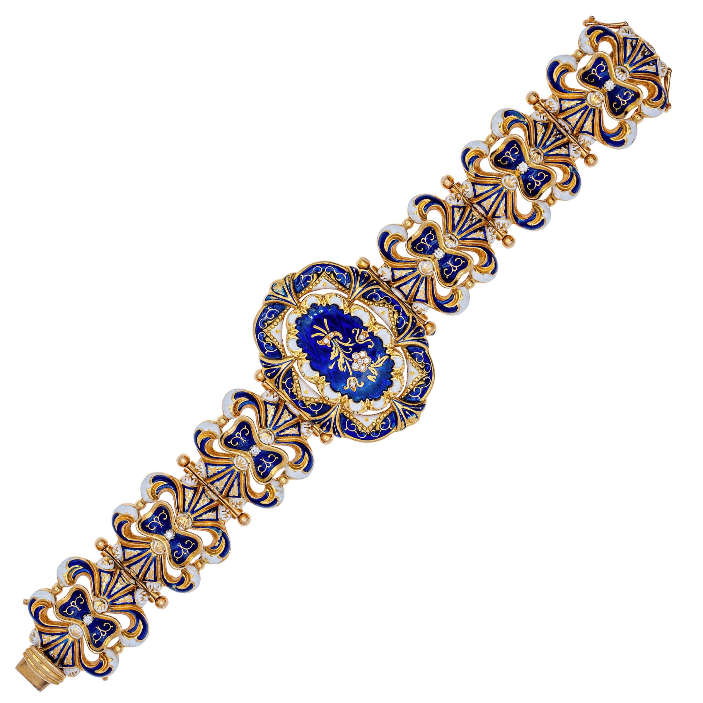 Antico bracciale in oro giallo 18kt decorato con smalto