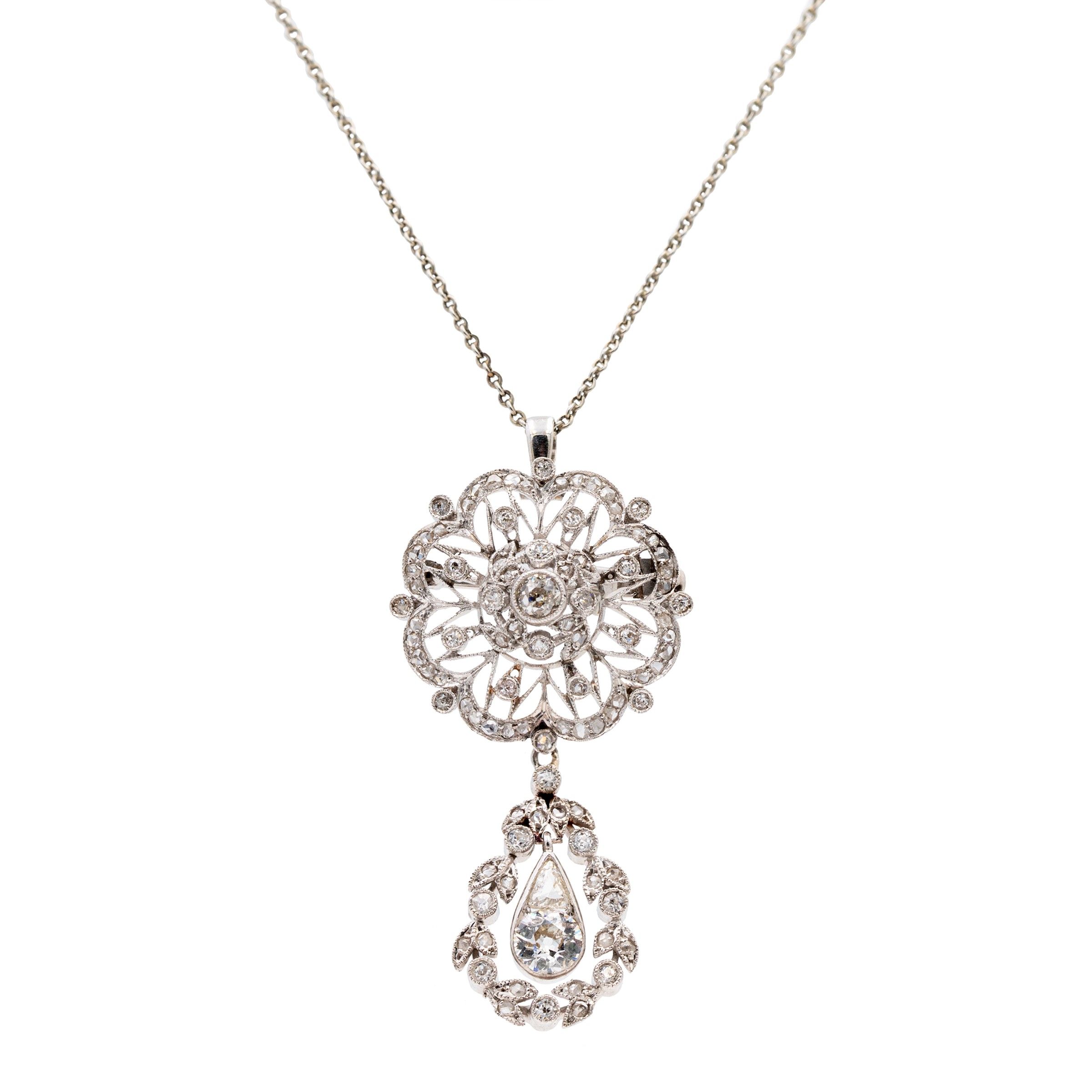 Antico pendente spilla in platino e diamanti
