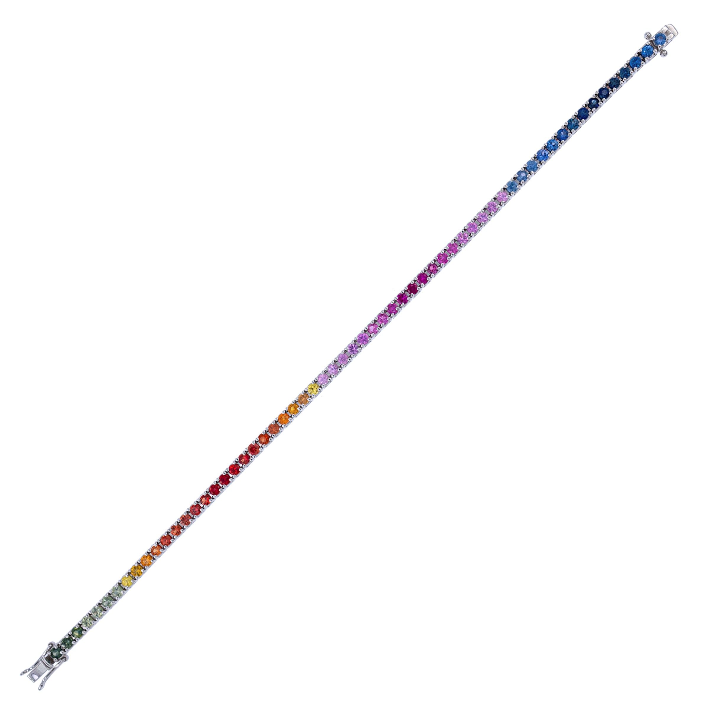 Bracciale tennis in oro bianco 18kt e zaffiri di colore diverso