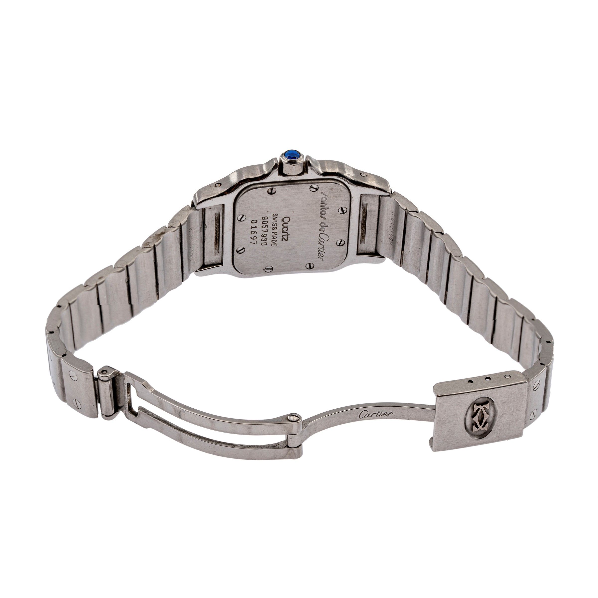 anno 2019 in acciaio, ref. 01697 - 905790, cassa 24x35 mm. quadrante crema con numeri romani, movimento al quarzo, calibro cartier 157, bracciale originale in acciaio con chiusura deployante, due maglie supplementari, cassa, quadrante e movimento firmati