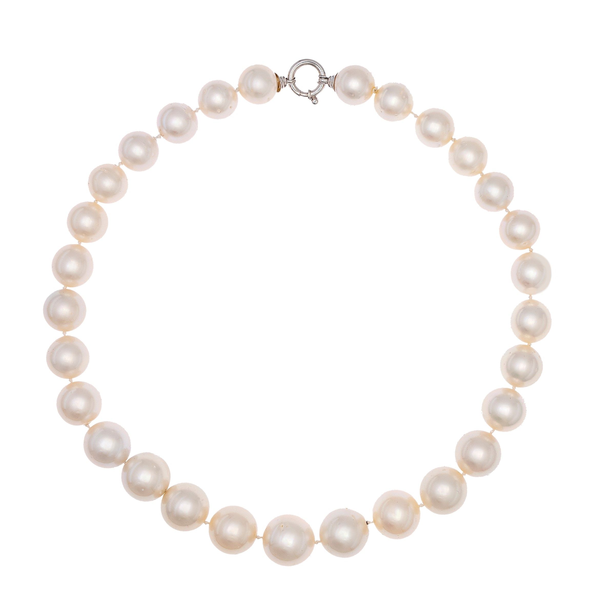 disposte a gradazione da 13 a 17 mm. circa, chiusura in oro bianco 18kt, lunghezza 46 cm.