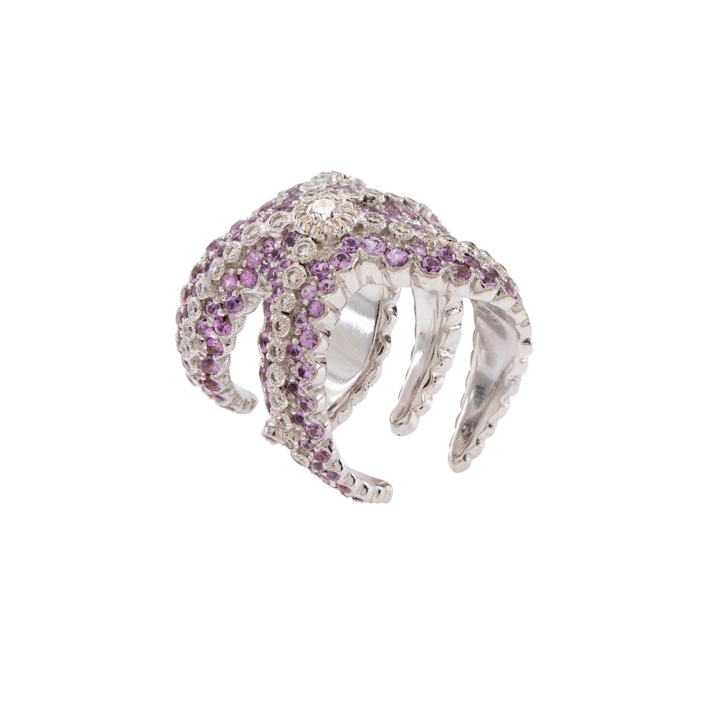 Geneve anno 2010, firmato in oro bianco 18kt zaffiri rosa alternati da diamanti taglio brillante, centrato da un diamante taglio brillante, misura 15