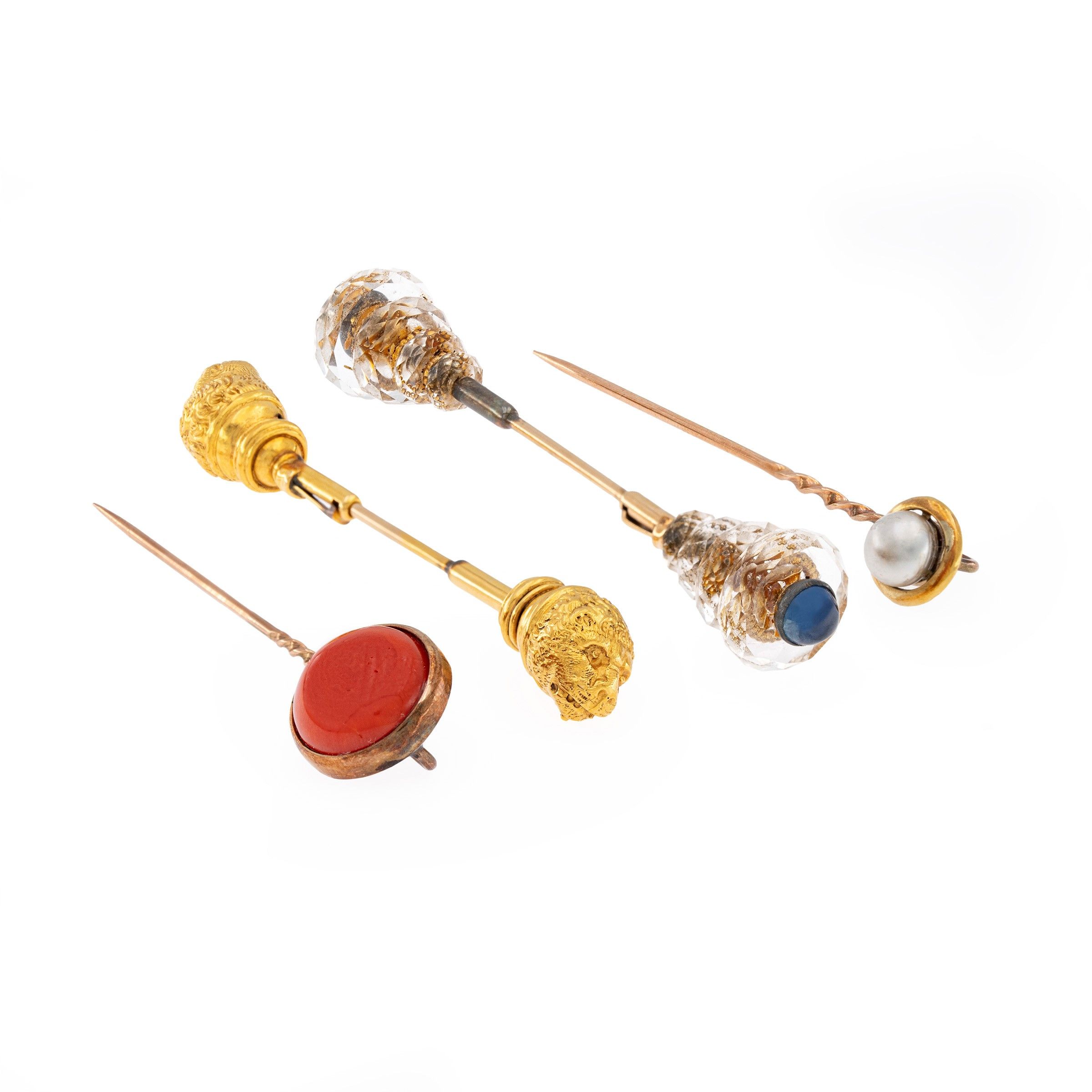 Due jabot pin e due spilloni in oro giallo 18kt