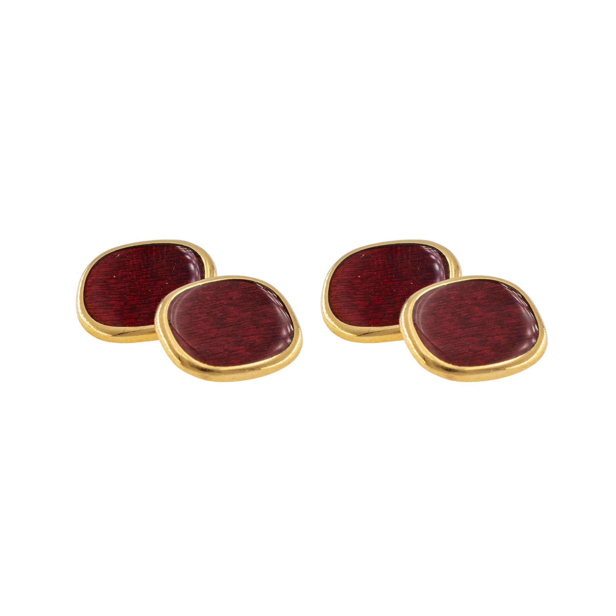 Gemelli in oro giallo 18kt e smalto guilloché rosso
