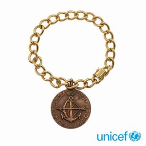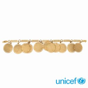 peso 48 gr. firmati e numerati, anno 1982 in oro giallo 18kt e acciaio con monete Soleil, diametro 3,3 cm. completi [..]