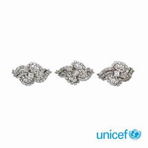 Tre spille in oro bianco 18kt e diamanti