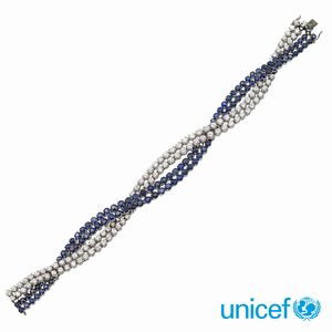 peso 33 gr. diamanti taglio brillante ct 4 circa disposti a gradazione e zaffiri tondi ct 3,80 circa, lunghezza [..]