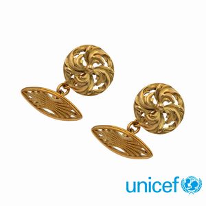 peso 42 gr. firmati e numerati, anno 1987 in oro giallo 18kt e brunito, diametro 2,8 cm. completi di scatola. [..]