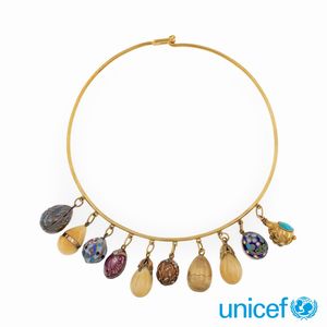 peso 152 gr. firmata e numerata, anno 1988 in oro giallo 18kt con sfere di quarzo russo rosa e verde e perle [..]