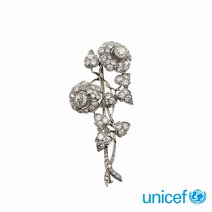 Spilla a motivo floreale in oro bianco 18kt e diamanti