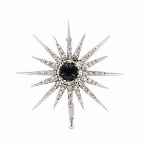 peso 17 gr. zaffiri tondi ct 3,80 circa e diamanti taglio brillante ct 1,50 circa, misura 15
