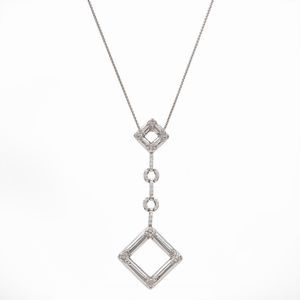 peso 15 gr. firmato Recarlo taglio brillante ct 0,30 circa, lunghezza 7,5 cm. completo di collana in oro bianco [..]