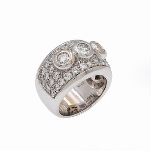 peso 6 gr. tre diamanti taglio antico ct 0,70 circa, altri diamanti ct 0,65 circa, misura 14