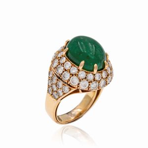 peso 7 gr. anni 40/50 smeraldo taglio cabochon e diamanti taglio brillante antico, misura 14