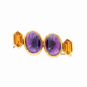 Spilla in oro giallo 18kt ametiste e topazi gialli