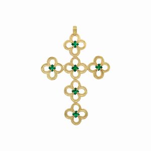 Pendente Croce in oro giallo 18kt e granati verdi