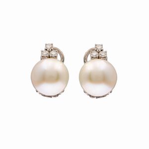 Orecchini a lobo in oro bianco 18kt perle South Sea e diamanti