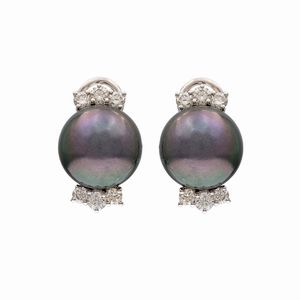 Orecchini a lobo in oro bianco 18kt perle Tahiti e diamanti