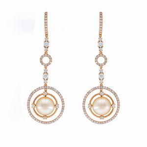 Orecchini pendenti in oro giallo 18kt perle golden e diamanti