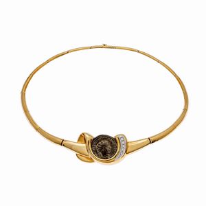 Girocollo in oro giallo 18kt con moneta antica
