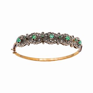 Antico bracciale a manetta in oro rosa 9kt e argento con diamanti