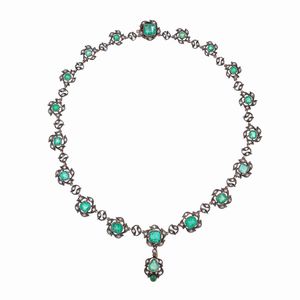 Antica collana in oro e argento smeraldi e rose di diamante