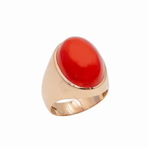 Anello in oro rosa 18kt e corallo rosso
