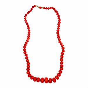 Antica collana ad un filo di corallo a barilotti