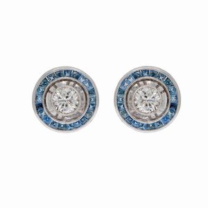 peso 5 gr. diamanti taglio antico ct 1 circa e zaffiri taglio carré, diametro 1,2 cm.