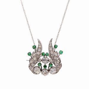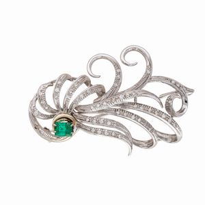 Spilla ramage in oro bianco 18kt smeraldo e diamanti