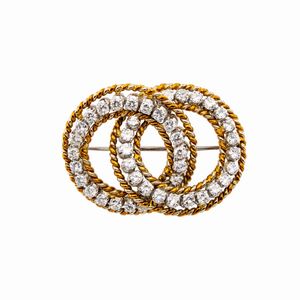 Coppia di spille a motivo floreale in oro giallo 18kt