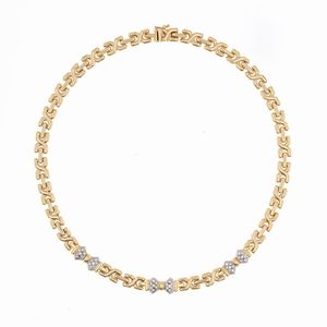 Girocollo a motivo geometrico in oro giallo 18kt e diamanti