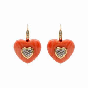 peso 16 gr. cuori in corallo con incastonato un cuore in oro giallo e diamanti ct 0,40 circa, lunghezza 3,4 cm [..]