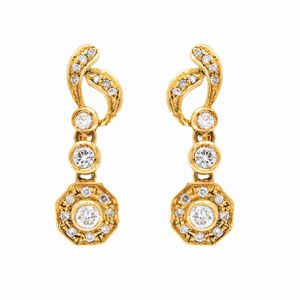 Orecchini pendenti in oro giallo 18kt e diamanti