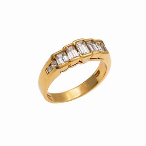 Anello mezzafede in oro giallo 18kt e cinque diamanti