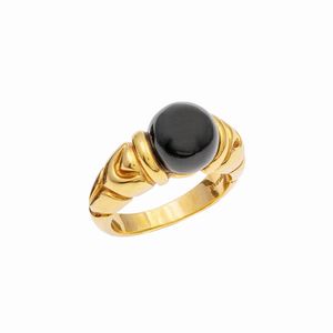 peso 9 gr. firmato in oro giallo 18kt sormontato da una sfera in onice nero, misura 13, completo di custodia [..]