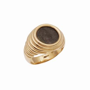 peso 12 gr. firmato in oro giallo 18kt con moneta antica in argento, misura 12, completo di scatola