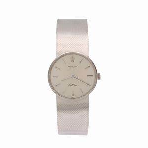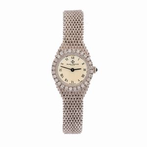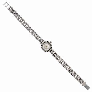 peso 36 gr. anni 60 circa in oro bianco 18kt, cassa 17 mm. contornata da diamanti taglio brillante, quadrante [..]