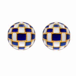 peso 24 gr. firmati, anni 70 circa in oro giallo 18kt con incastonate sezioni in lapislazzulo e madreperla alternati, [..]