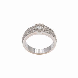 peso 8 gr. ct 0,80 circa ai lati diamanti taglio brillante ct 1 circa, misura 17