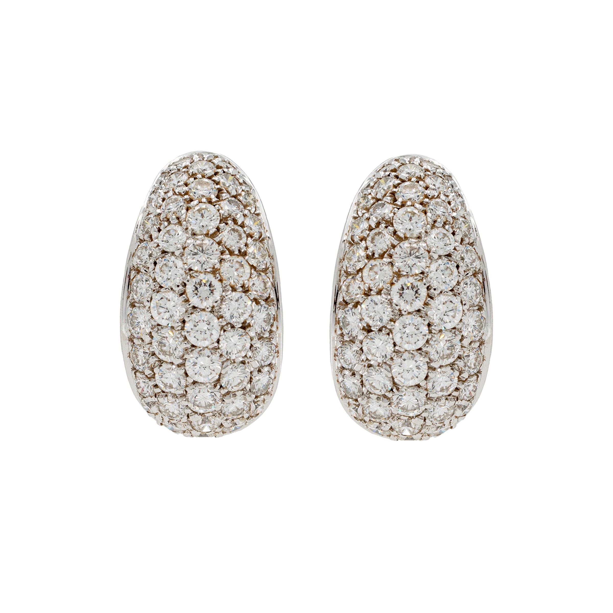 Orecchini a lobo in oro bianco 18kt e pavé di diamanti
